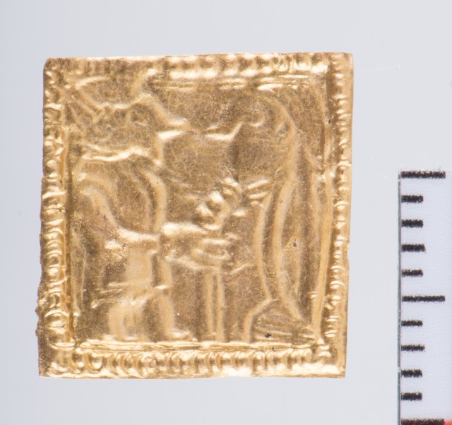 Very often the figures are enclosed by an edge in the form of a row of beads or simple lines. The gold images seem to tell us a story and one of the most fascinating features is the degree and level of all the details in the image that are best captured through a microscope.